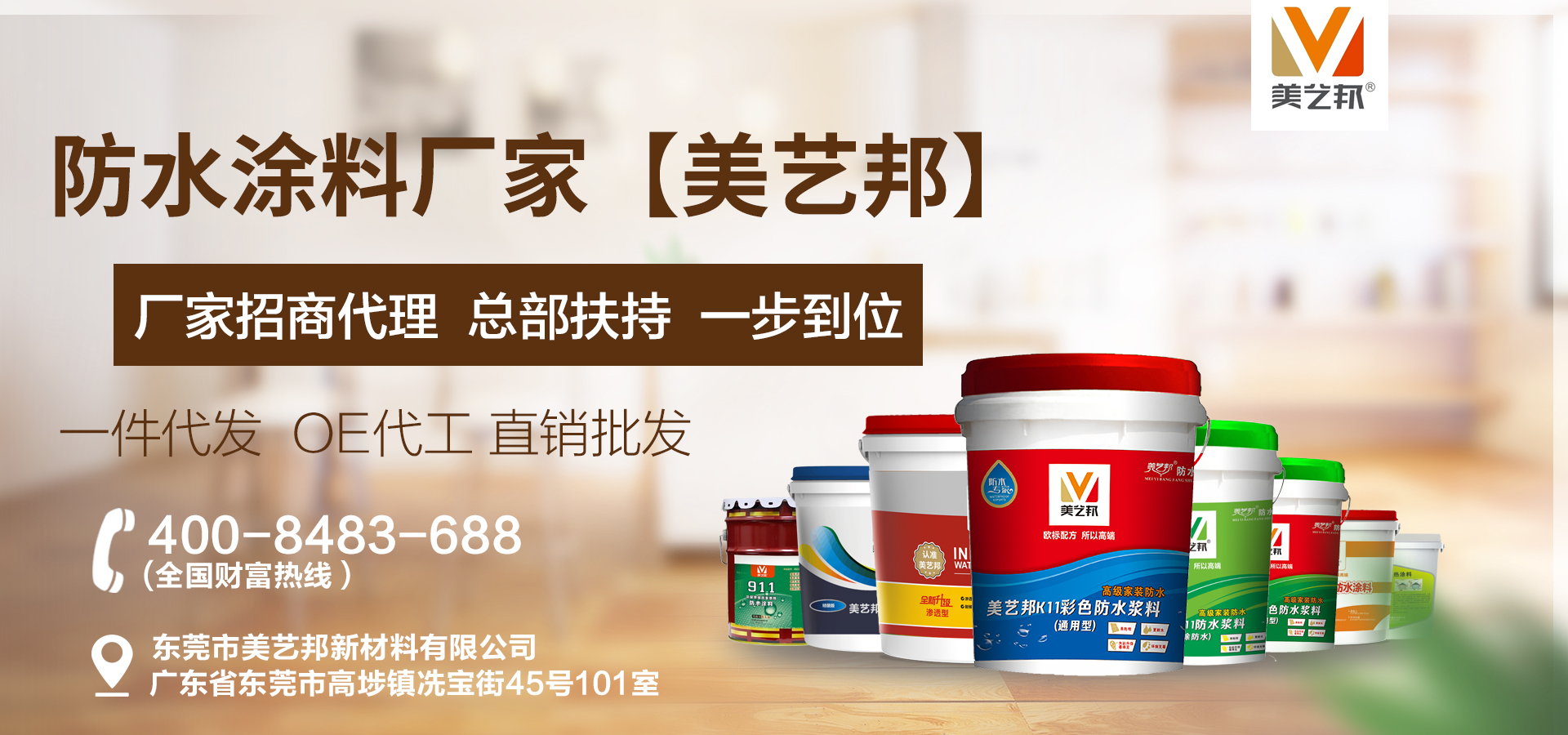 東莞市美藝邦新材料有限公司,是一家建筑防水行業集研發、設計、生產、銷售于一體的高新技術企業?;跂|莞生產基地,開展全國建筑輔材加盟招商代理批發業務。 我司采用國內外先進的科學技術的同時,緊跟國際發展趨勢及結合國內市場特點,自主研發出健康環保型產品,其中包含防水涂料(K11彩色通用型防水涂料、K12彩色柔韌型防水涂料、JS聚合物防水涂料等等),瓷磚背膠(加強型瓷磚背膠、大理石瓷磚背膠、速干型瓷磚背...
